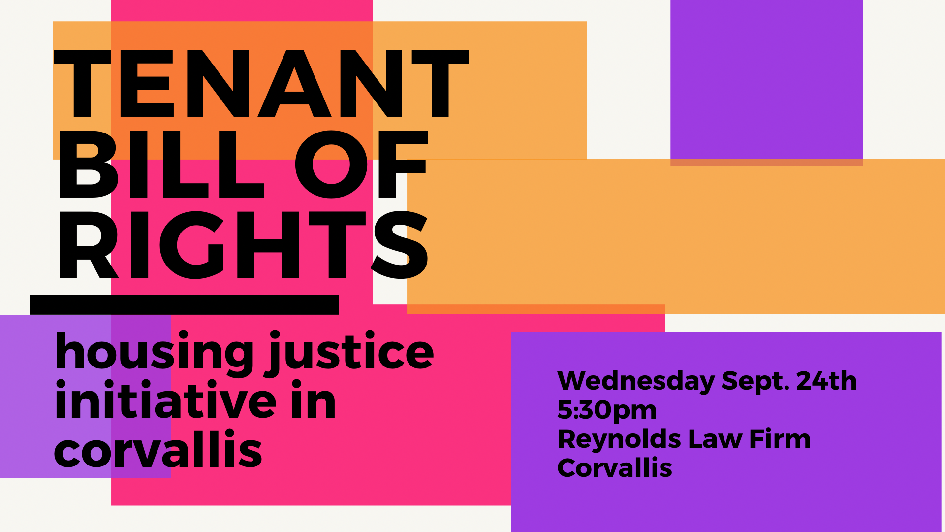 Our next member meeting is Wednesday, September 24th at 5:30 pm at the Reynold’s Law Firm at 555 NW 5th Street for a program about Tenant Rights! For more details follow us on Facebook at CORE Corvallis and sign up to join our email list below.